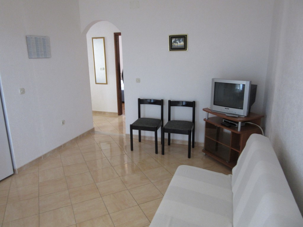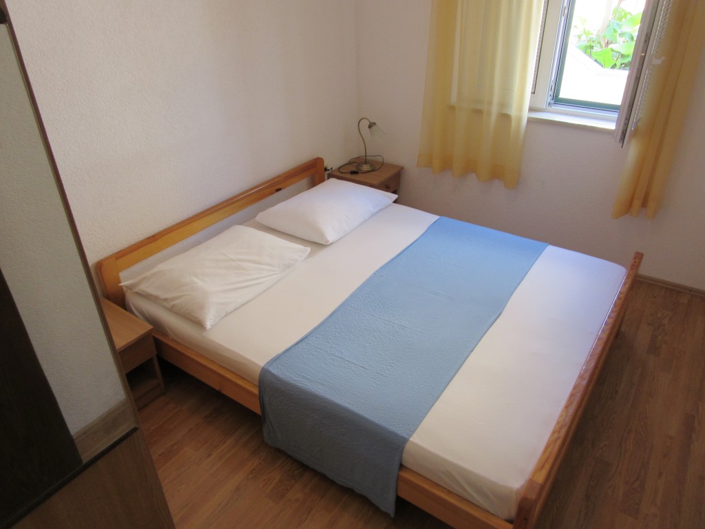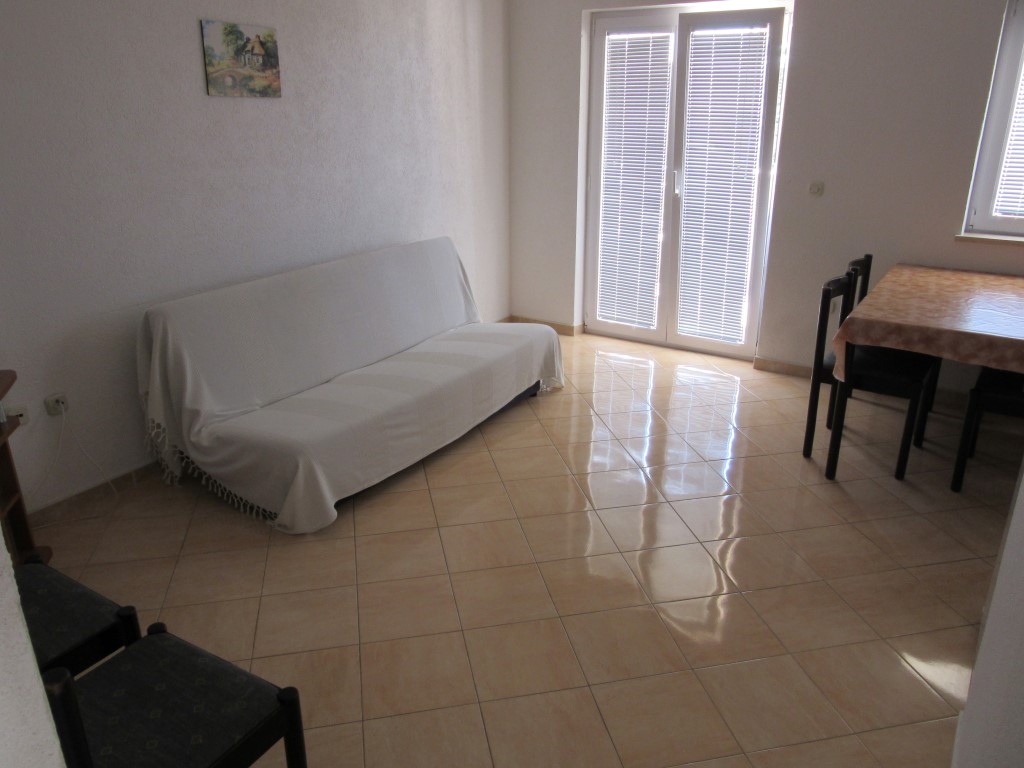 It has one big room with double bed and one single bed. In the living room, there is a couch that can be pulled out and used as extra bed for one person.